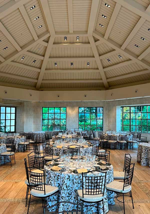 Gracias a su imponente estructura acristalada, tendrás la sensación mágica de celebrar al aire libre, pero con todo el confort y la sofisticación del interior. Es un lugar donde la arquitectura —diseñada por el reconocido Pascua Ortega— te permite mirar al cielo, haciendo de tu boda o evento algo trascendental.